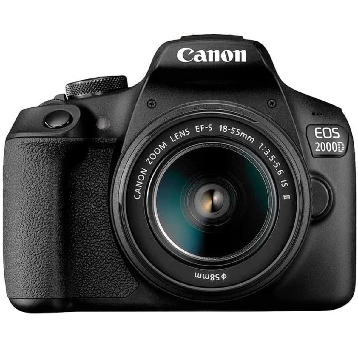 - What included: Canon EOS 2000D Body, Canon 18-55mm f/3.5-5.6 IS II Lens, Eyecup EF, Battery Pack, Battery Charger, Camera Strap